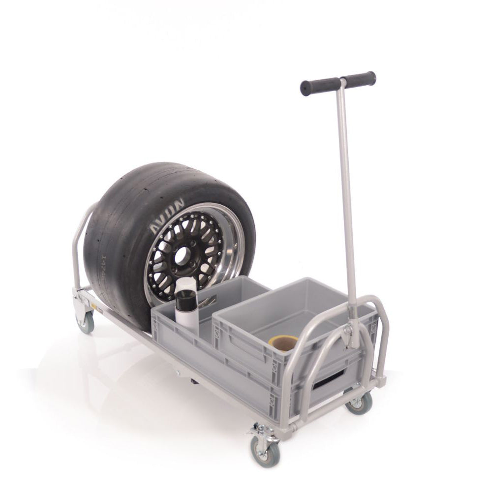 BG Racing Taitettava Varikkokärry – Pitkä Malli on kestävä ja käytännöllinen varikkokärry varusteiden kuljettamiseen varikolla, varikkotallissa tai työpajassa. Taitettuna kärry vie vain vähän tilaa kuljetuksen aikana, mutta avattuna se tarjoaa runsaasti tilaa renkaille, vanteille, työkaluille ja Euro-laatikoille.