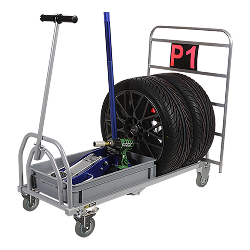 Kärryssä on kaksi kiinteää pyörää ja kaksi täysin kääntyvää lukittavaa ja jarrullista pyörää, jotka takaavat hyvän vakauden ja helpon käsiteltävyyden. Kärryä voidaan vetää käsin tai kiinnittää varikkoajoneuvoon.