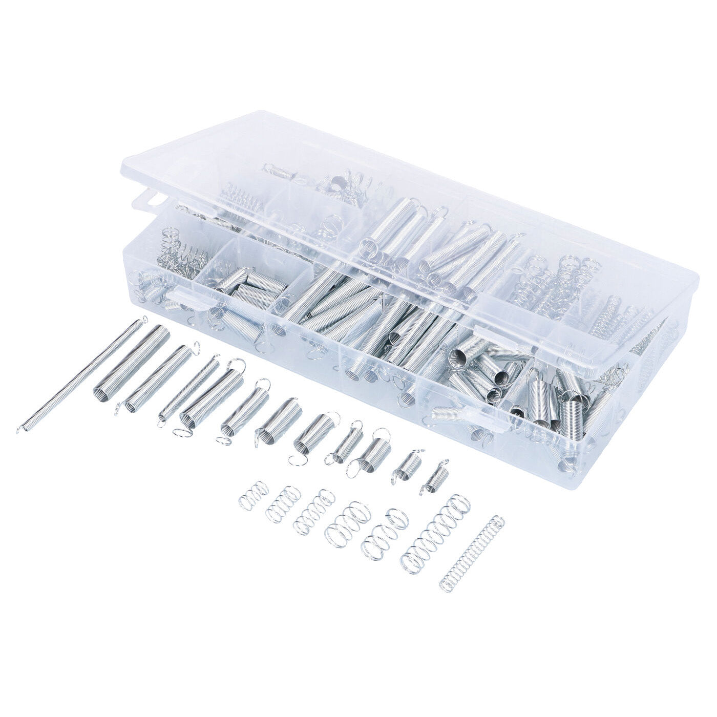 Sortimentlåda med tryck- och dragfjädrar 200 st